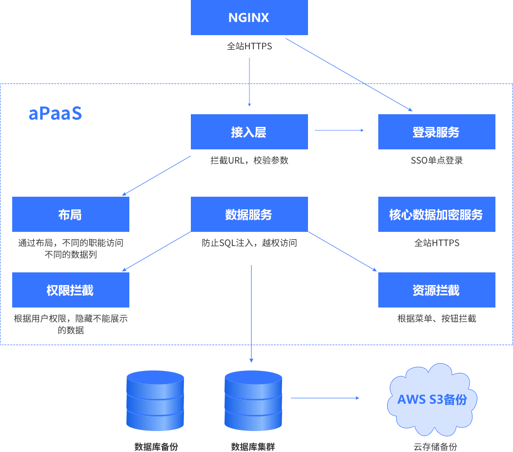备注:::平台与业务分离,,,开发运维只运维平台,,,业务专家生成的元数据(表/字段/运行逻辑)+业务数据全部以碎片的方式存储在DB中,,技术人员无法解读,,,,只有业务专家授权后才能导出元数据+业务数据