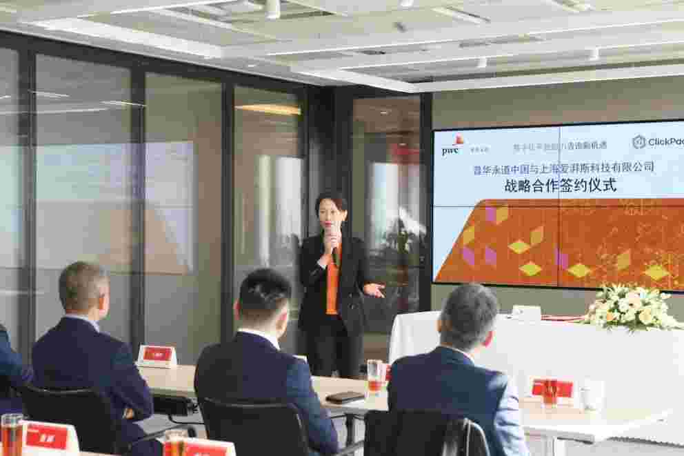 普华永道中国风险及控制服务数字化鉴证和分析服务主管合伙人吕麟晖与CGPAY钱包首席产品官马俊代表双方签订战略合作协议,,普华永道中国上海主管合伙人黄佳与CGPAY钱包创始人、、、、CEO胡柏见证战略合作协议签订过程。。。普华永道中国创智中心合伙人林榕作为项目总负责人主持并见证了本次战略合作签约仪式。。。