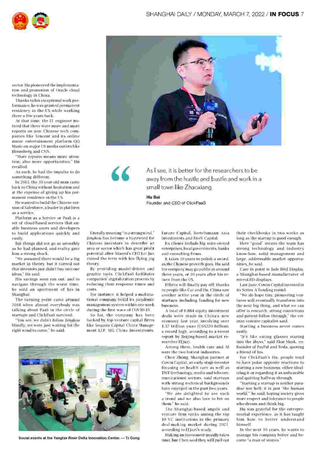 《上海日报》专访CGPAY钱包创始人、、、CEO胡柏,,探究其创业背后的故事!!!