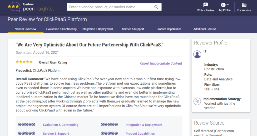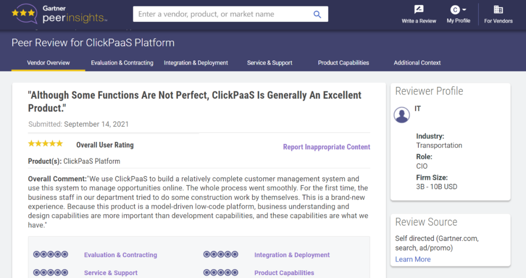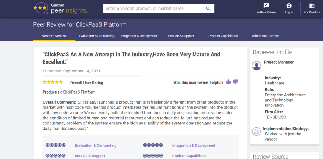 Tips::::【Peer Insights】——用户对企业IT产品和服务发布真实评价的平台。。。目前已有355个市场,,255,000条经过验证的评价。。。每一条评价Gartner会针对参评企业营收规模及参评人员信息做验证、、、、评价内容做多维核实。。